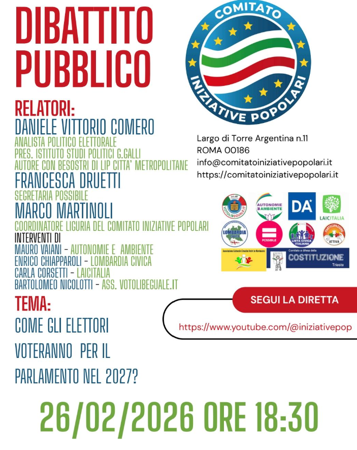 I soci che sono interessati a candidarsi nel consiglio direttivo (composto da 6 membri) dovranno comunicarlo via mail a direttivo@laicitalia.it entro il 7 marzo p.v. indicando come oggetto "candidatura consiglio direttivo 2026"
