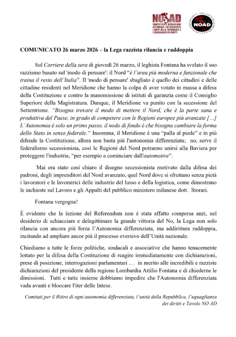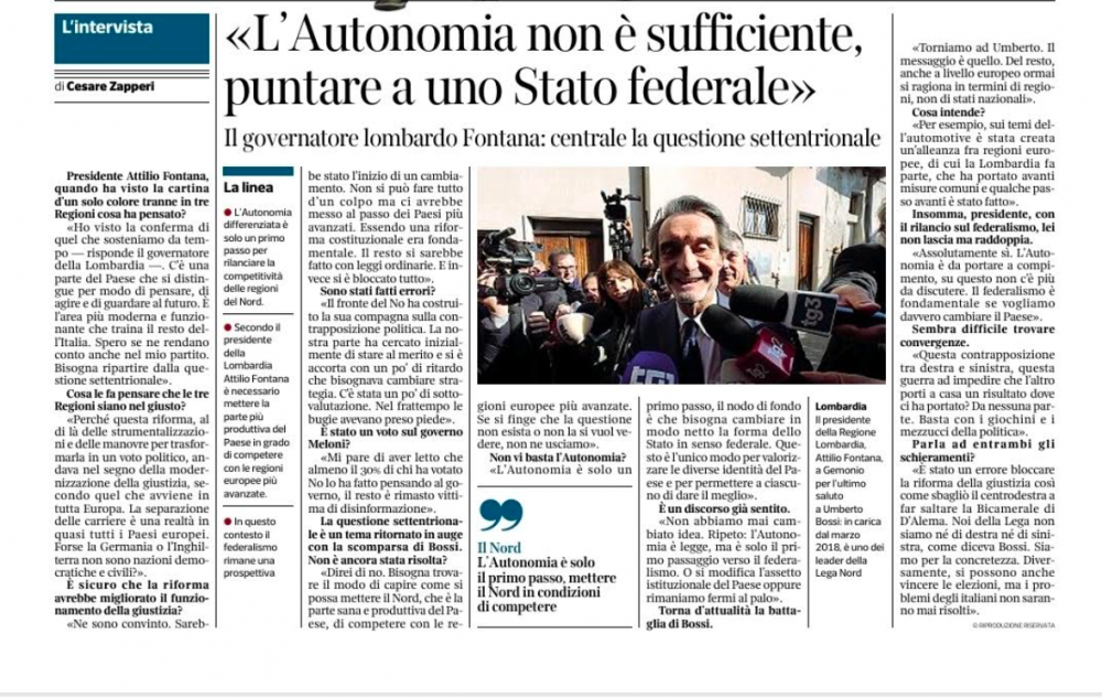 il presidente della regione Lombardia, il leghista Attilio Fontana, ha fatto oggi (26 marzo) una incredibile e gravissima intervista sul Corriere della sera (vedi allegato).